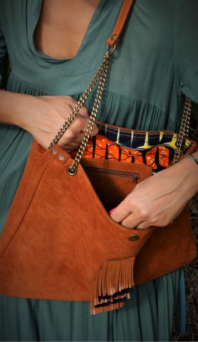 Cabas style bohème avec franges, doublure tissus wax africain.