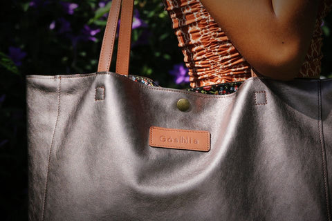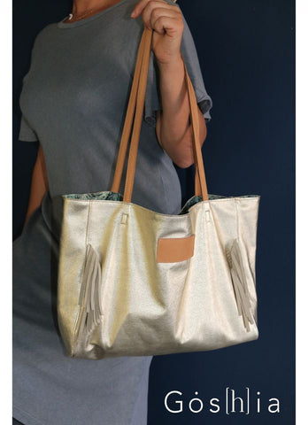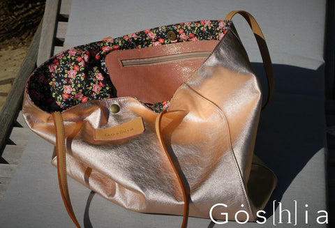 Sac cabas en veau irisé tannage minéral doublé ave un tissus coton ou wax
