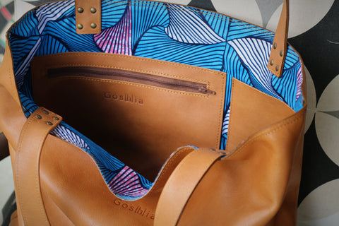 Sac cabas doublé en tissus wax, avec poche à fermeture éclaire à l'intérieur